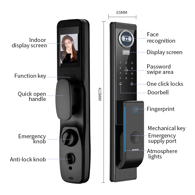 Opremljena z notranjim zaslonom visoke ločljivosti, ima ključavnica visoko trdno ohišje iz cinkove zlitine (zaščita pred draženjem, zaščita proti rji) in zasnova z nizko porabo energije (življenjska doba baterije 12+ mesecev z alarmom za nizko moč). Njegov preprost in eleganten videz se prilega različnim stilom dekoracije.